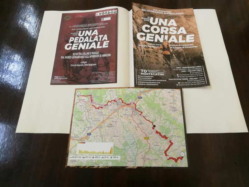 Alle due competitive si affiancano una eco passeggiata di 17 km con partenza da Montecatini e arrivo a Collodi (con partenza alle 8,30 alle Terme La Salute) e due eventi collaterali: una “Passeggiata Geniale” di 5 km che si terrà sabato 30 marzo alle 16 all’interno di Vinci, alla scoperta del paese del grande Leonardo e una “Pedalata Geniale” che si terrà domenica 31 marzo, con partenza alle 9: 35 km di passeggiata in bici dalle colline di Vinci al Padule di Fucecchio in un’ideale congiunzione artistica tra Leonardo e gli affreschi di Annigoni.