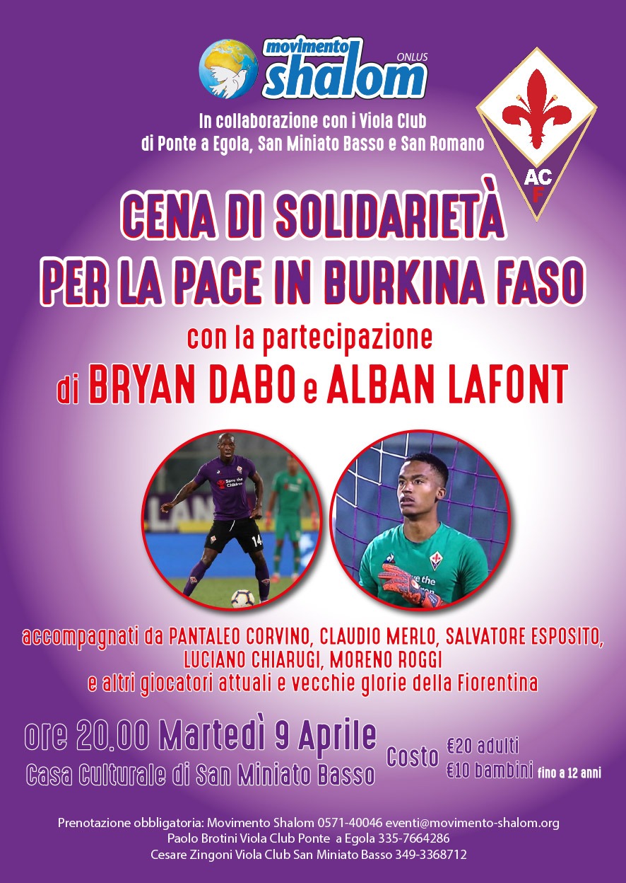A San Miniato Basso presso Casa Culturale il 9 aprile ore 20.00. La prenotazione è obbligatoria presso Movimento Shalom tel 0571 400462 o dai presidenti dei Viola Club di San Miniato Basso, Ponte a Egola e San Romano.