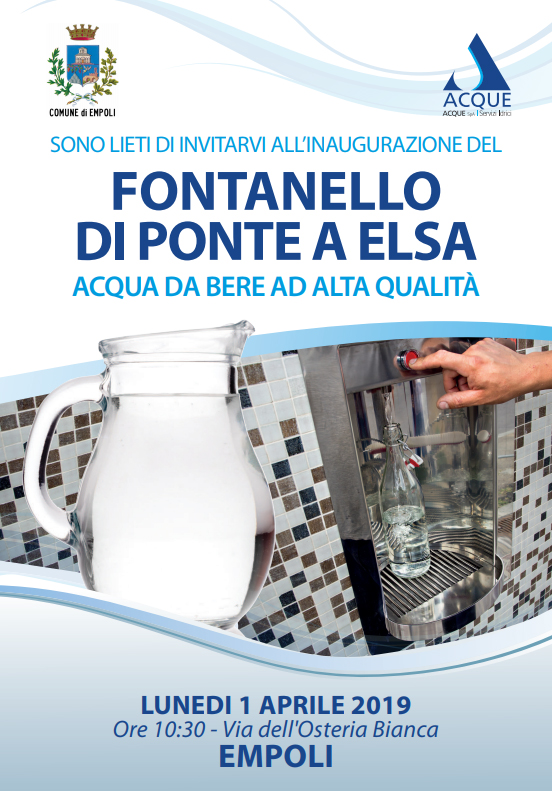 Offrire opportunità di risparmio economico alle famiglie, concorrere alla riduzione di rifiuti, sensibilizzare l’opinione pubblica sull’importanza della risorsa idrica e avvicinare la popolazione al consumo domestico dell’acqua di rubinetto. Sono i principali obiettivi che l’amministrazione comunale di Empoli e Acque SpA, gestore idrico del Basso Valdarno, perseguono attraverso l’installazione di un nuovo fontanello di acqua ad alta qualità a Ponte a Elsa.