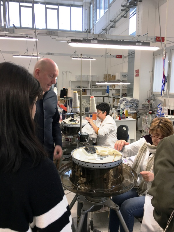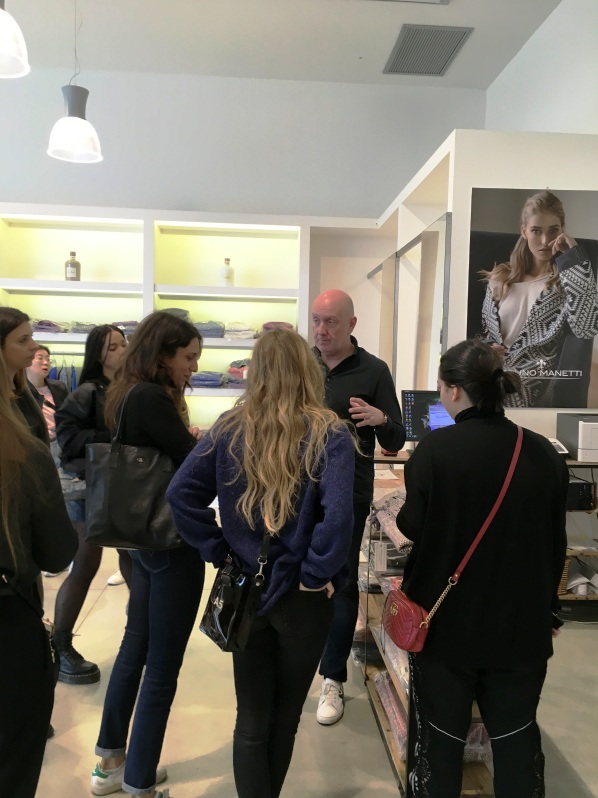 Il titolare Bruno Manetti, ha accompagnato i ragazzi in un tour dell` azienda, mostrando loro tutte le fasi di lavorazione; dal filato al prodotto finito; senza dimenticare la parte creativa e dell`ideazione della collezione, ribadendo quanto sia importante il lavoro delle sue artigiane, e il fattore umano oltre alle macchine.