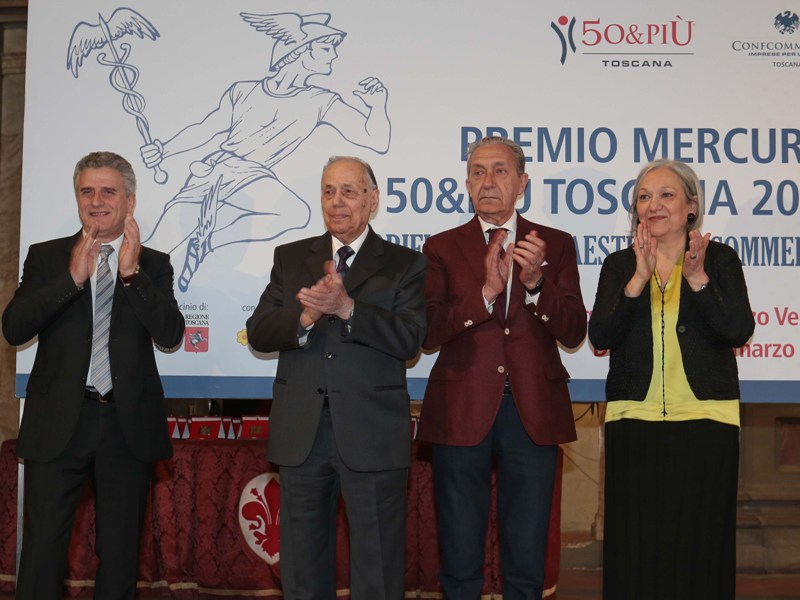 “Domenica conosceremo storie importanti di impresa – spiega Antonio Fanucchi, presidente della di 50&Più Toscana – ma soprattutto storie di vita del nostro territorio. Ad unire i premiati ci sono i principi e i valori sui quali hanno fondato il loro impegno professionale. Questi sforzi, questo impegno profuso in un dignitosissimo silenzio, rappresentano un’altissima espressione di solidarietà e coesione sociale per la nostra provincia”. Meriti che 50&Più intende appunto valorizzare a livello regionale con il Premio Mercurio, che ogni due anni viene attribuito ad una serie di Maestri candidati dalle sedi provinciali dell’associazione. Fra di loro ci sono agenti immobiliari e di commercio, ristoratori e alimentaristi, macellai e baristi, dettaglianti di abbigliamento e imprenditori dei servizi del variegato sistema Confcommercio.