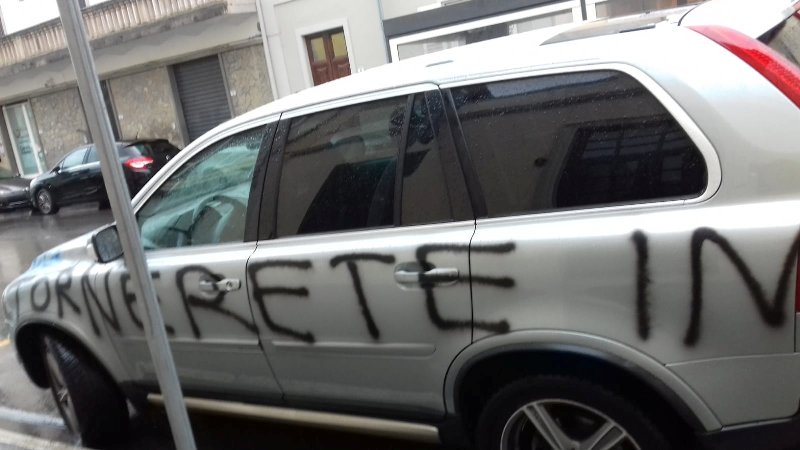 Come si può vedere dalle foto in basso, un suv è stato preso di mira dai tifosi, armati di bomboletta spray. Anche se non c'è la certezza, si presume che a compiere le scritte siano stati i tifosi partenopei, amareggiati per il ko. Da un post Facebook si apprende che l'auto si trovava parcheggiata nelle vicinanze della caserma dei carabinieri di via Tripoli.