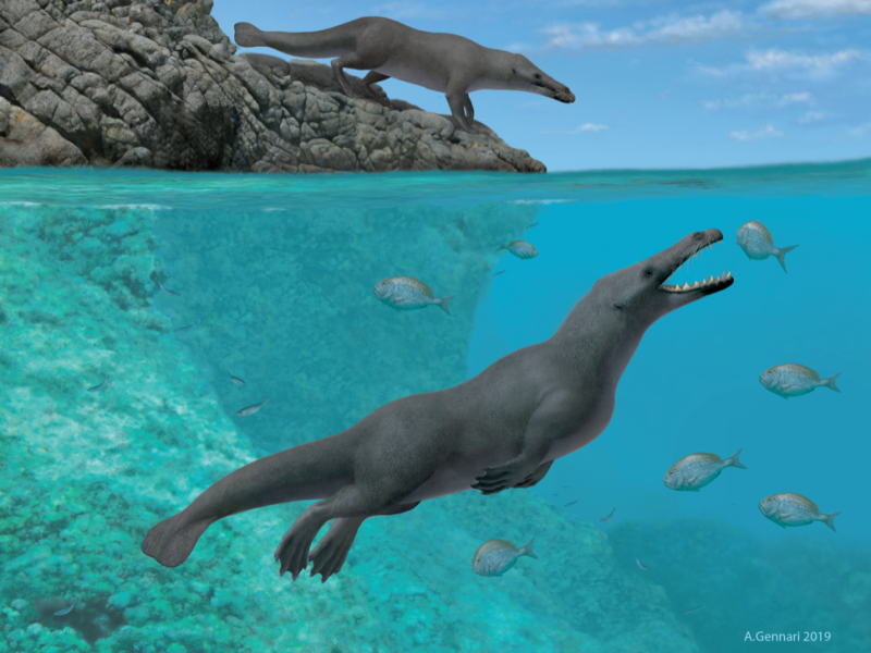 “Un aspetto particolarmente interessante di questo nuovo archeoceto – afferma Giovanni Bianucci, paleontologo del dipartimento di Scienze della Terra dell’Università di Pisa che ha preso parte allo scavo e allo studio del fossile – è che la presenza di piccoli zoccoli sulle dita, assieme alla forma del bacino e degli arti, suggerisce che fosse ancora in grado di camminare sulla terraferma mentre le lunghe dita, probabilmente palmate, e le caratteristiche anatomiche della coda indicano che era anche un buon nuotatore. Si tratterebbe, quindi, di uno stadio intermedio fra le balene e i delfini di oggi (non più in grado di muoversi fuori dall’acqua) e i loro antenati terrestri a quattro zampe, cioè di animale dal modo di vita simile alla lontra.”