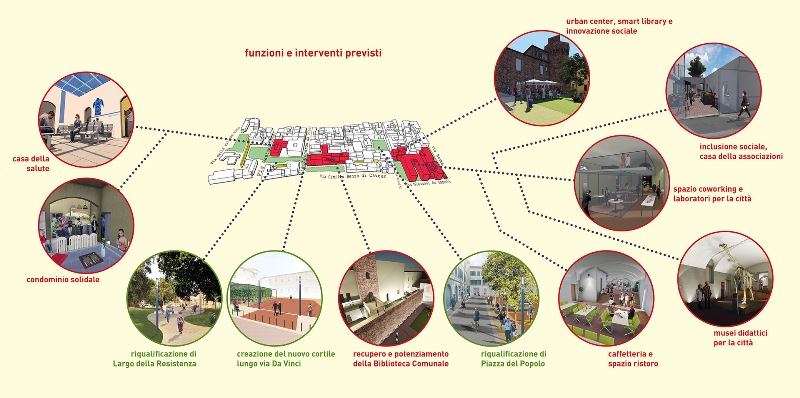 PROGETTO - Il processo strategico, coordinato dal Comune di Empoli e un gruppo di ricerca del Dipartimento di Architettura di Firenze, ha consentito lo sviluppo di progetti volti a incrementare la dotazione di servizi per favorire lo scambio intergenerazionale, l'inclusione sociale e l’incontro tra le diverse comunità presenti sul territorio, all’interno di un contesto urbano riqualificato, sicuro, accessibile e rivitalizzato dall’immissione di nuove funzioni. Gli interventi di recupero previsti, concentrati su complessi storici di proprietà pubblica interni al perimetro di rivitalizzazione, interagiscono attraverso il sistema degli spazi aperti, ripensati al fine di migliorare l’accessibilità, la fruibilità e la sicurezza tra le funzioni esistenti e quelle di nuova previsione.