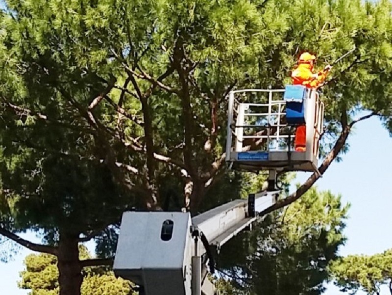 Tuttavia alcune piante sono risultate comunque infestate e pertanto su queste è stato effettuato o già programmato un primo intervento di rimozione dei nidi, attraverso l'intervento degli operatori direttamente sull’albero grazie all’uso della piattaforma area.