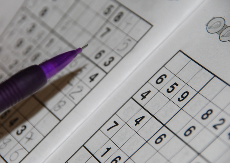 photo of a pencil on a famaous sudoku grid (shallow depth of field)
