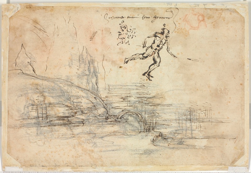 Il disegno ha poi rivelato alcune misteriose tracce solo incise, con uno stilo cosiddetto “cieco” o “acromo” (cioè che non lasciava tracce colorate, sia pure lievi, come quelle della punta di piombo): alcune sono identificabili, per esempio un cavallo sul retro del foglio. Altre ancora delineano una seconda catena montuosa, sul fronte; e infine ve ne sono alcune di incerto significato, sempre sul fronte, e potrebbero far pensare a impronte lasciate dalla sovrapposizione di un’altra carta e quindi, di nuovo, indirizzare verso una destinazione non nobile, ma di uso comune, del foglio.