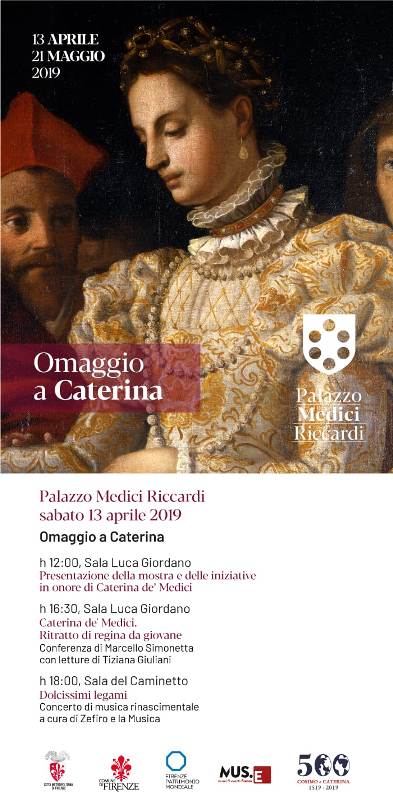 Dal 13 aprile al 21 maggio il pubblico potrà infatti fruire della mostra temporanea 'Omaggio a Caterina' e di un programma di eventi tesi a evidenziare il legame che Caterina de’ Medici ebbe con il palazzo di famiglia – Palazzo Medici Riccardi - nella sua infanzia e giovinezza fino al trasferimento in Francia nel 1533. Figlia di Maddalena de la Tour d’Auvergne e di Lorenzo duca d’Urbino, entrambi destinati a scomparire poche settimane dopo la nascita, Caterina abita infatti le stanze della residenza medicea durante i suoi soggiorni fiorentini, alternati a quelli romani e alla custodia forzata presso i conventi femminili di Santa Lucia, Santa Caterina e delle Murate negli anni dell’assedio fiorentino.