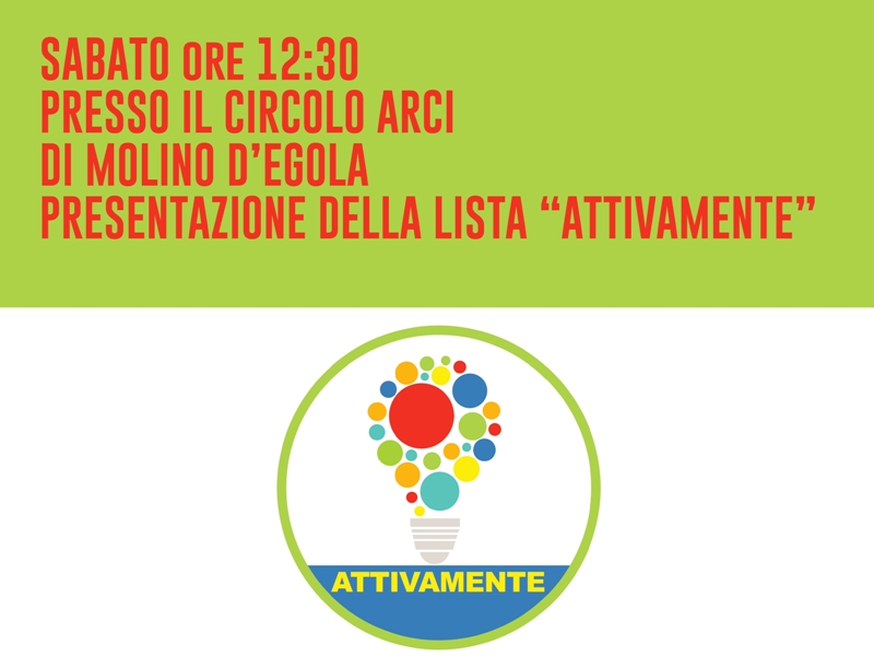 Nel corso dell'aperitivo verranno presentati i candidati della lista Attiva.Mente per le prossime elezioni amministrative del 26 Maggio 2019.