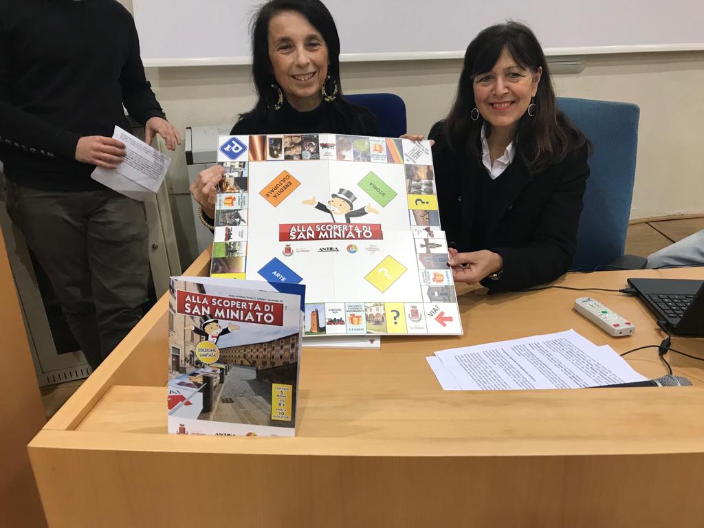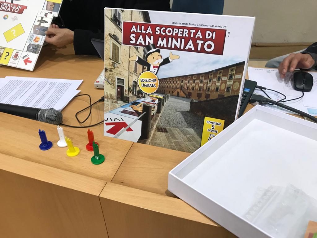 Un gioco da tavolo interamente dedicato alla Città di San Miniato, con un percorso guidato, domande e curiosità. E' questa l'idea è nata dagli alunni delle classi 4A e 4B dell'indirizzo turismo dell‘IT Cattaneo che hanno svolto attività di alternanza scuola/lavoro all'ufficio del turismo di Piazza del Popolo e al Sistema museale di San Miniato, in collaborazione con la Fondazione San Miniato Promozione e il Comune di San Miniato. Dopo i materiali turistici in più lingue, adesso gli studenti hanno creato, con la collaborazione delle docenti Maria Beatrice Bianucci e Mila Nuti, un vero e proprio gioco da tavolo in doppia lingua (italiano e inglese) dal titolo “Alla Scoperta di San Miniato”, che hanno voluto presentare questa mattina alla presenza degli amministratori, del preside Alessandro Frosini e di Laura Balducci della Conceria Antiba.