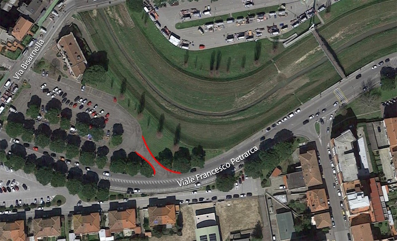 È infatti prevista la realizzazione di un collegamento carrabile tra Viale Petrarca e lo stesso parcheggio: un passaggio che consentirà accesso e uscita dei veicoli, e quindi l’uso degli stalli auto non a pagamento presenti in quello spazio, anche durante gli eventi per i quali è prevista la chiusura di Via Bisarnella, lato Serravalle, in pratica durante il mercato.