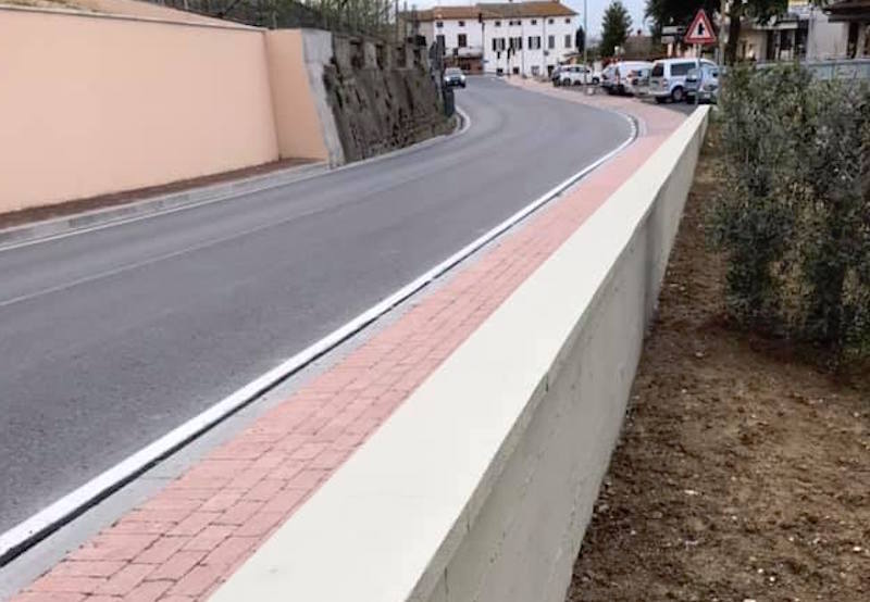 Con il marciapiede, l’Amministrazione comunale ha creato un percorso sicuro per i pedoni con stalli per le auto e la piantumazione di alberi. I lavori sono stati realizzati dalla ditta Buonanno mentre lo studio tecnico del Prof. Arch. Fabrizio Rossi Prodi ha redatto il progetto in collaborazione con l’ufficio tecnico del comune.