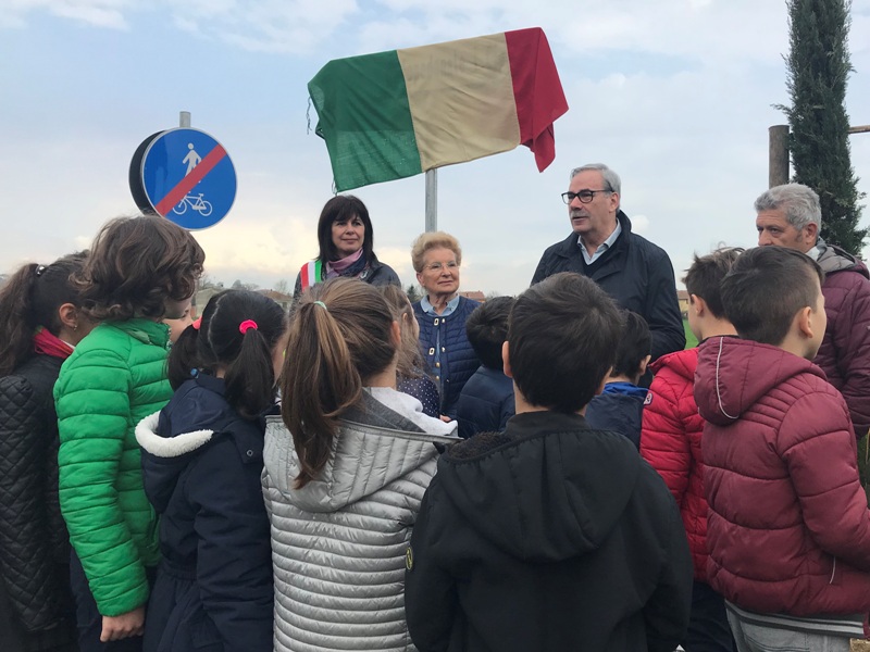 Una passeggiata lungo la nuova pista ciclopedonale “I cipressi” a Molino d'Egola, con tutti i bambini della scuola primaria “Cardi” di Cigoli, per festeggiare la conclusione dei lavori. A fare gli onori di casa insieme al sindaco Vittorio Gabbanini e all'assessore Marzia Fattori è stato il coordinatore della Consulta di Cigoli-Molino-Catena Walter Salvini che ha collaborato con il Comune di San Miniato per realizzare questo progetto, insieme alla signora Maddalena Ponticelli che ha realizzato a proprie spese una porzione della pista.