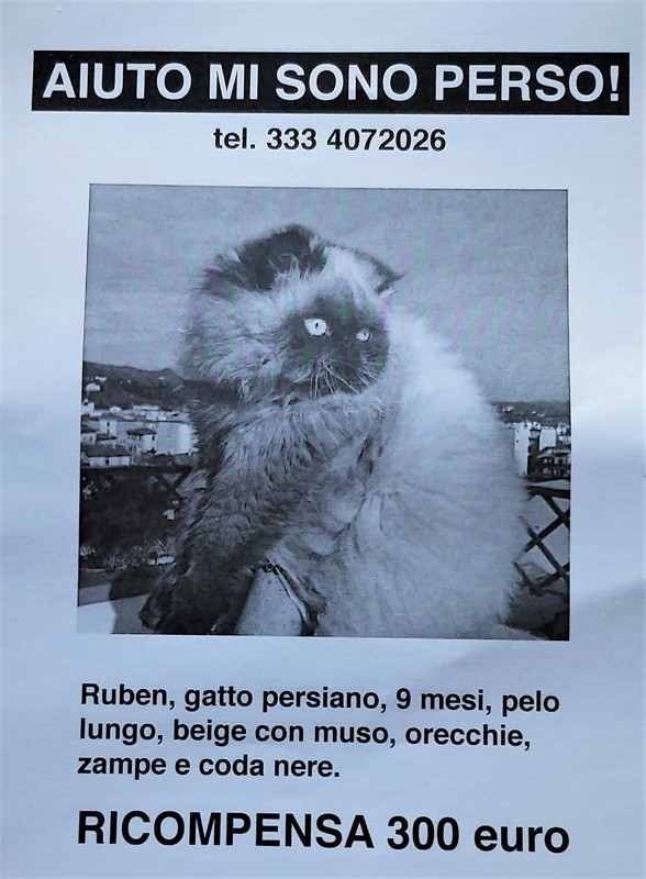 Ruben è un gatto persiano di nove mesi che lo scorso 9 marzo si è smarrito, anche lui come Siria, in zona Campo di Marte a Firenze.