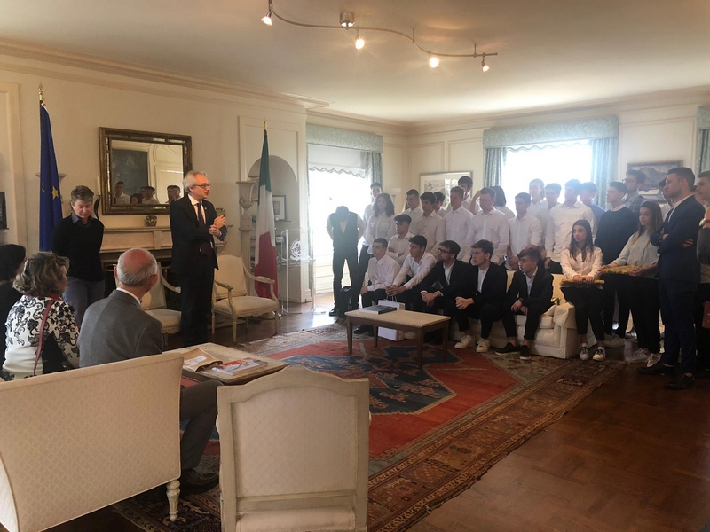 Sono stati calorosamente accolti al Consolato Italiano di San Francisco dal Console Generale Dr. Lorenzo Ortona e dalla Prof.ssa Anna Zeppieri, responsabile della Scuola e Cultura Italiana a San Francisco. L’incontro è stato particolarmente commovente quando i nostri ragazzi hanno cantato il nostro Inno Nazionale completo.