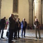 La delegazione di Castelfiorentino, nella quale era presente anche il Gonfalone, ha incontrato le autorità del Comune di Firenze e della Regione Toscana presso la sede di Palazzo di Parte Guelfa insieme al corteo del Calcio Storico Fiorentino, per poi dirigersi verso la Cattedrale di Santa Maria del Fiore, dove è stata celebrata la funzione religiosa. All’interno della cattedrale il Prof. Massimo Ricci – uno dei maggiori studiosi del Brunelleschi - ha quindi dato lettura dell’epitaffio di Carlo Marsuppini, aggiungendo alcune considerazioni sul Brunelleschi. Dopo gli interventi delle autorità, la delegazione si è recata nella Cripta in Santa Reparata per la deposizione di due corone (una di mirto, l’altra di alloro) sulla tomba del Brunelleschi. Al termine della cerimonia, il corteo è rientrato al punto di partenza.