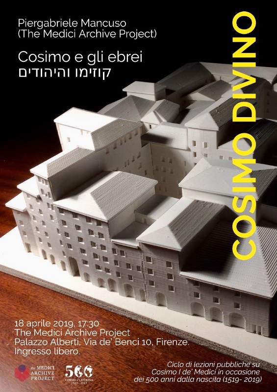 Rientra nel ciclo di 12 lezioni pubbliche dal titolo “Cosimo divino”, promosso da The Medici Archive Project, l'incontro Cosimo e gli ebrei che si svolgerà domani giovedì 18 aprile a Firenze. A tenere la lezione sarà Piergabriele Mancusodi The Medici Archive Project. L’appuntamento è alle 17.30 a Palazzo Alberti (via de’ Benci 10).