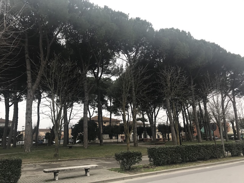 Il progetto dovrà prevedere soluzioni per la gestione delle piante di pino presenti: o il loro completo abbattimento (con sostituzione di altre piante ad alto fusto meno invasive) oppure una parziale sostituzione così come l’indicazione di sistema di mantenimento dell’esistente.