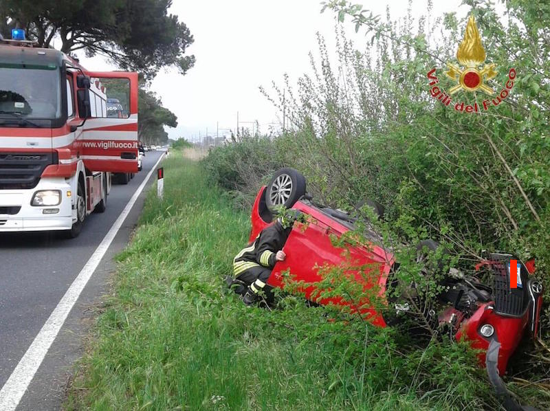 Incidente poco fuori Pisa verso le 17 di oggi, giovedì 25 aprile. Una donna a bordo di una utilitaria stava percorrendo la Aurelia Sud quando, in zona Coltano, ha perso il controllo dell'auto, che è finita fuori strada e si è ribaltata. I vigili del fuoco di Pisa hanno provveduto a estrarre e stabilizzare la donna e consegnarla al personale sanitario inviato 118 per le cure del caso. Sul posto la polizia locale.