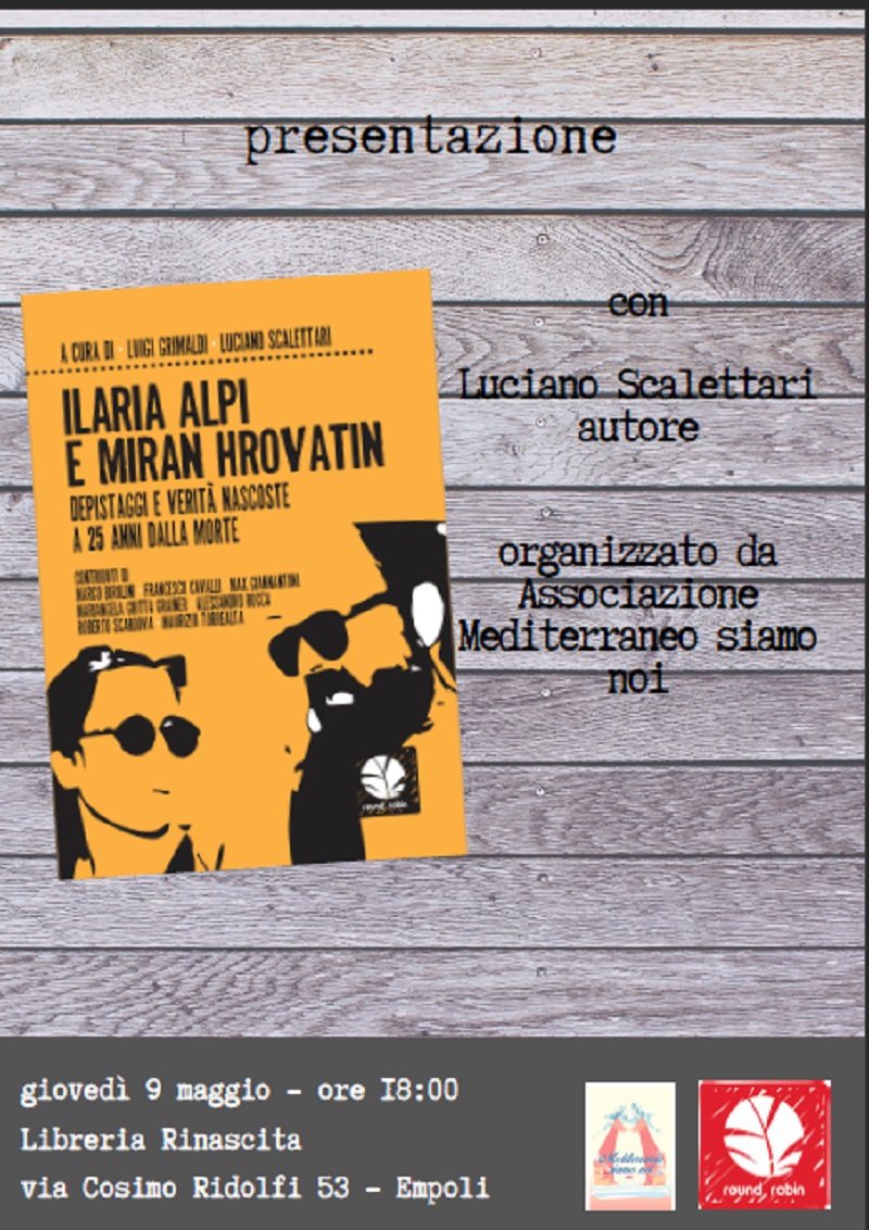 Alla libreria Rinascita di Empoli nuove riflessioni sul caso di Ilaria Alpi. Sarà presentato giovedì 9 maggio alle ore 18 il libro Ilaria Alpi e Miran Hrovatin. Depistaggi e verità nascoste a 25 anni dalla morte.