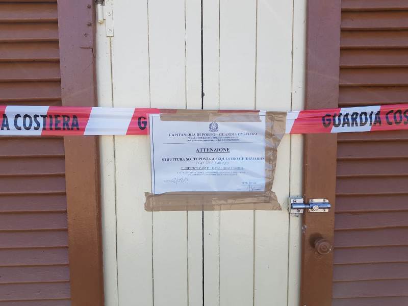 In particolare sono stati sequestrati 5 manufatti in legno e muratura adibiti a cabine spogliatoio, servizi igienici, bar, magazzino, docce.