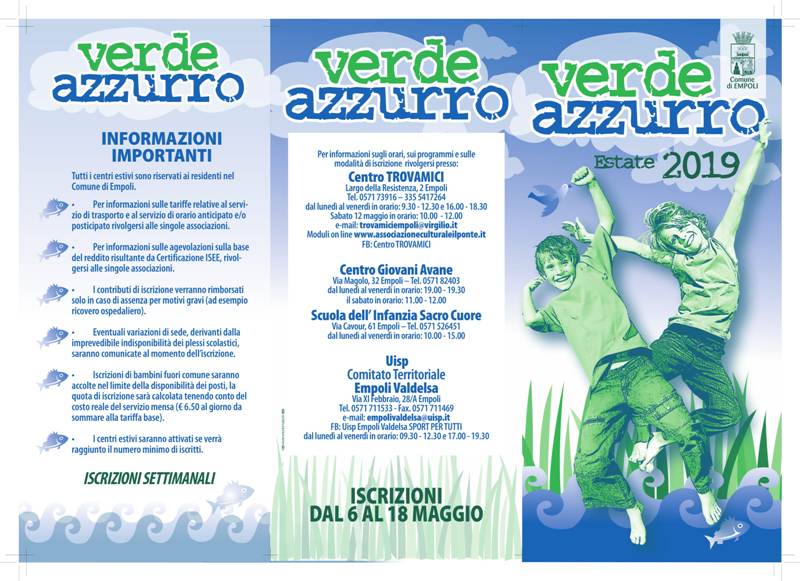 Con l’estate alla porte torna anche la programmazione dei centri estivi “Verde Azzurro”, rivolti a bambini e ragazzi di età compresa tra 3 e 14 anni. I centri estivi rappresentano un’opportunità importante per tutte le famiglie, una possibilità in più di gestire i figli nel periodo in cui le scuole sono chiuse.