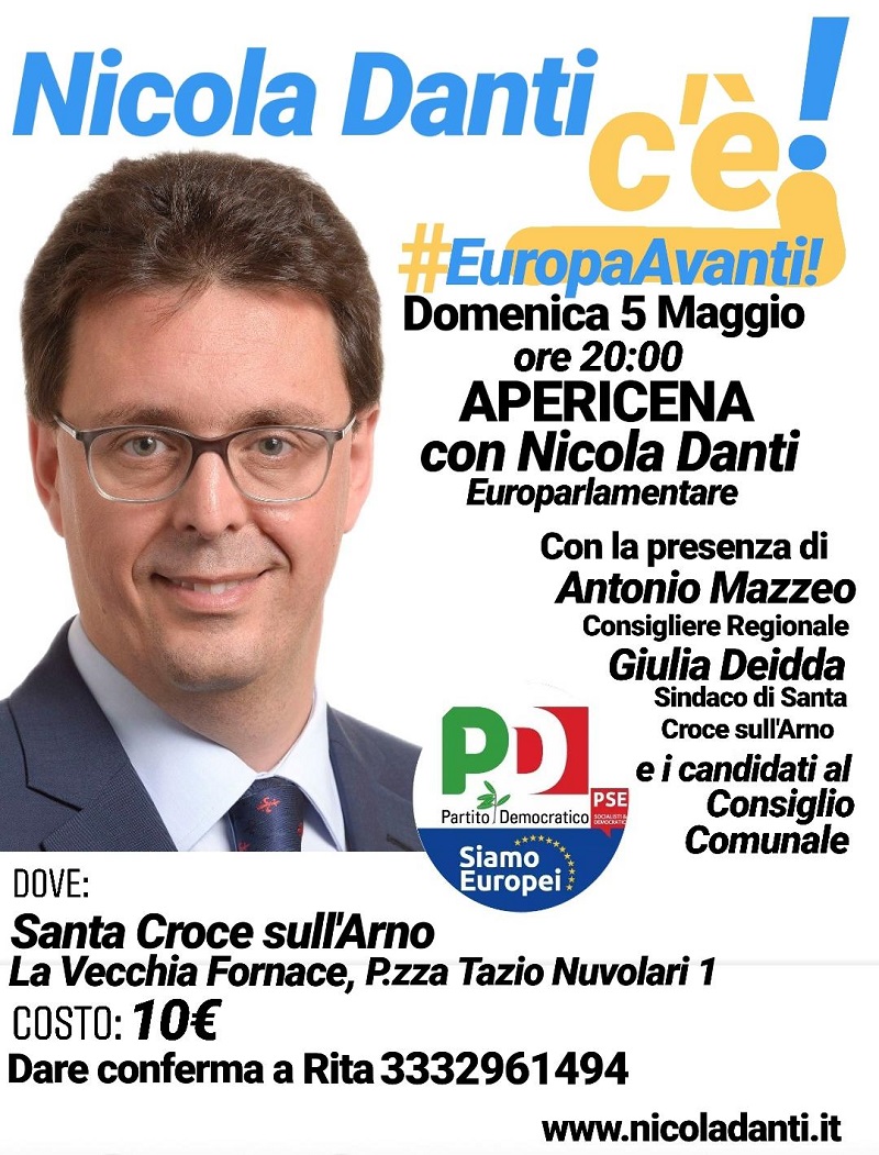 L’europarlamentare Nicola Danti sarà a Santa Croce sull’Arno e incontrerà la cittadinanza per parlare di temi che sono fondamentali per il Comprensorio del Cuoio in cui viviamo. In questi 5 anni ha dimostrato la sua vicinanza a questo territorio partecipando a numerose iniziative locali e occupandosi con competenza della tutela dei prodotti Made in Italy su cui si basa molta della nostra economia locale. Ha promosso politiche per assicurare più diritti ai consumatori europei anche attraverso la richiesta di una giusta tassazione per i giganti del web. Questi sono temi che fanno la differenza quando si crede in un’Europa che diventi davvero il grande Paese che abbiamo sognato ed in cui i giovani possano vivere e lavorare.