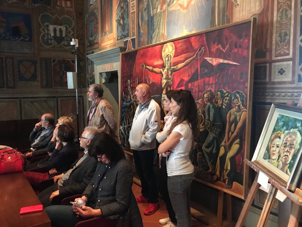 A dieci anni dalla scomparsa di Dilvo Lotti, il più celebre pittore sanminiatese morto il 22 aprile 2009, l'amministrazione comunale della Rocca ha voluto ricordare la sua figura con un'iniziativa culturale in Palazzo comunale, alla presenza di Luca Macchi, il suo più importante allievo. Durante la cerimonia di questa mattina, è stato presentato il fumetto ideato e disegnato da Targiom Aiogi (all'anagrafe Alessio Zoccheddu), un disegnatore di Ponte a Egola, che ha realizzato, in collaborazione con la professoressa Marilena Cimorelli, un piccolo volume in cui si racconta la “Giornata di Giovanni Papini a San Miniato”, ispirato all'omonimo racconto di Dilvo Lotti. L'iniziativa, curata dalla Fondazione Casa Lotti, ha previsto anche l'esposizione in Sala del Consiglio di una tela ad olio realizzata dal Lotti nel 1960 e conservata nel Museo di via Maioli, dal titolo “Crocifissione apocalittica”, commissionata da Giorgio La Pira per una mostra tenutasi a Firenze nel Loggiato degli Uffizi all’interno di una manifestazione antiatomica.