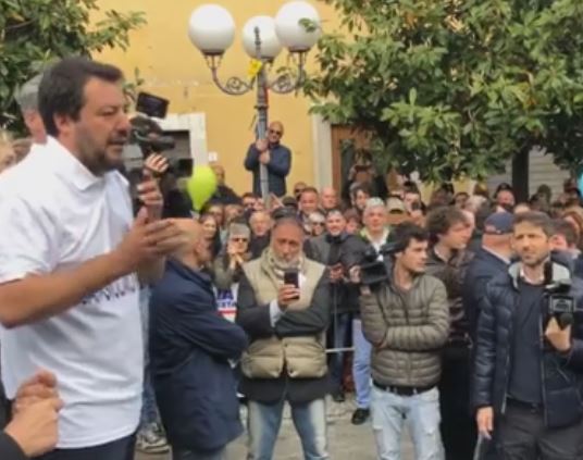 Matteo Salvini, segretario della Lega, è a San Giuliano Terme per il tour elettorale che oggi in Toscana lo porterà a Capannori, Montecatini Terme, Prato, Scandicci e Figline Valdarno. Nella cittadina nel Pisano, Salvini è stato accolto da una decina di antifascisti che lo ha accolto al grido di "25 aprile non è un derby", riferendosi alla mancata partecipazione di Salvini nel suo ruolo istituzionale di Ministro dell'Interno, alle celebrazioni del 25 aprile, Liberazione dell'Italia. Il leader del Carroccio ha raggiunto a piedi, scortato dalle forze dell'ordine, il palco allestito in piazza per sostenere il candidato sindaco del centrodestra Antonio Casucci.