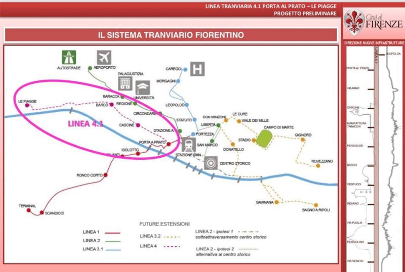Presentato al Teatro delle Spiagge dal sindaco di Firenze Dario Nardella il progetto della linea 4 della tramvia, che collegherà la stazione Leopolda fino a Le Piagge e successivamente a Campi Bisenzio. I lavori, già finanziati per il primo lotto, inizieranno a fine 2020 (se le procedure autorizzatorie del Ministero si concludono secondo le previsioni) e dureranno 30 mesi. "Abbiamo pianificato cantieri a impatto zero, il percorso si sviluppa per la maggior parte lungo la ferrovia. Un ulteriore tassello del sistema tranviario fiorentino, per un trasporto pubblico puntuale e sostenibile", spiega sul suo profilo Facebook.