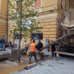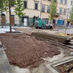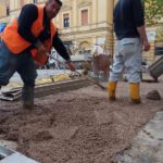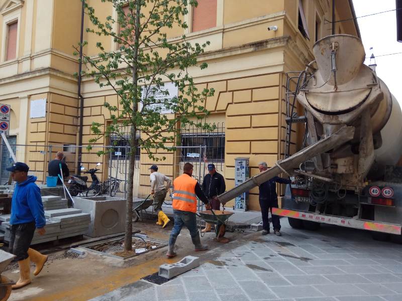 In queste ore la ditta incaricata dal Comune si sta dedicando alle aree attorno alle nuove alberature che presenteranno lo stesso tipo di pavimentazione vista in Piazza XXIV Luglio.