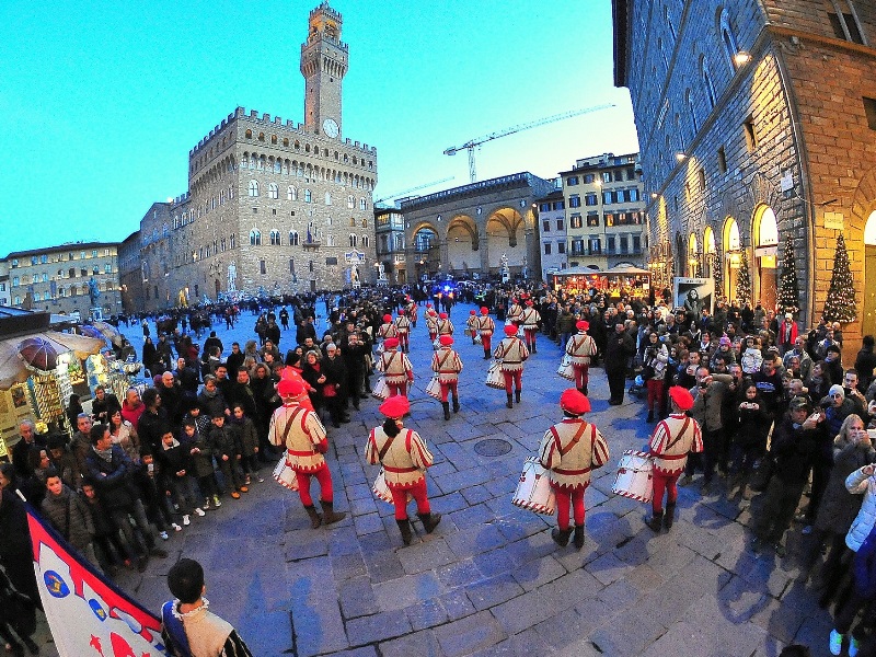 Il corteo, a cui porgerà un saluto anche il sindaco di Firenze (intorno alle 18:30, all’arrivo in piazza della Signoria) ha il Patrocinio dell’Associazione Toscana Rievocazioni Storiche e si avvale della partecipazione di figuranti provenienti da diversi associazioni del territorio quali Scannagallo (Foiano della Chiana), Palio del Diotto (Scarperia), Palio del Cerro (Cerreto Guidi), Giostra della Stella (Bagno a Ripoli), Contrada Alfiere (Bagno a Ripoli), Danze Storiche (Montopoli Valdarno), Bizzarria d’Amore (Fucecchio). Oltre duecento figuranti sfileranno così nel centro cittadino, riproponendo gentiluomini e gentildonne fiorentine, magistrature e milizie, scortando la coppia ducale, impersonata dagli esperti storici e attori MUS.E Alberto Galligani e da Giaele Monaci. Una prima parte del corteo aprirà la sfilata, seguito dalla scorta armata e dai “famigli” medicei, per poi chiudere con il resto del corteo militare e con i musici. Al seguito ci saranno anche i Lanzichenecchi e la scorta spagnola. Il corteo prenderà il via da Palazzo Medici Riccardi ed effettuerà il seguente percorso: Palazzo Medici, Via Cavour, Via Martelli, Piazza Duomo, Via Calzaiuoli, Piazza della Signoria. Poco dopo le 18 i Duchi e l’entourage di corte si posizioneranno sull’arengario di Palazzo Vecchio, mentre il Corteo Storico si disporrà in piazza, rievocando le cerimonie in onore di Cosimo I de’ Medici e di Eleonora di Toledo con un saluto delle istituzioni.
