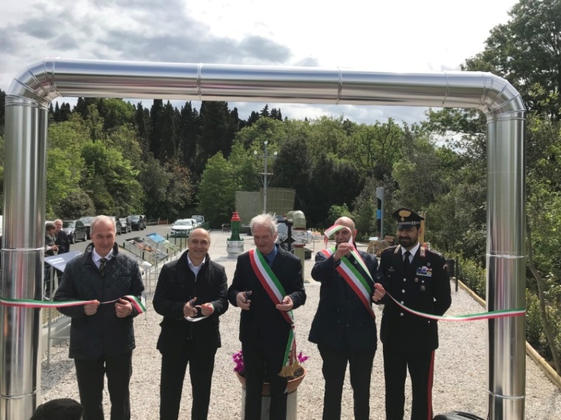 È stato infatti inaugurato questa mattina a Monteverdi, sulla SP 329 al km 19+800, il Parco “Porta per la Geotermia” che appena prima del paese di Monteverdi, lato Sassetta, illustra la geotermia toscana attraverso pannelli che in italiano e in inglese spiegano la storia e il funzionamento di questa risorsa rinnovabile, abbinandoli ad altre pannellature sui luoghi turistici da visitare sul territorio, nonché tramite una bella esposizione di componentistica del ciclo produttivo geotermico, dai vapordotti che costituiscono anche la porta di accesso al parco fino ai boccapozzi, alla torre di raffreddamento e ad altre apparecchiature che consentono al vapore proveniente dal cuore della terra di arrivare in turbina per la produzione di energia elettrica per poi essere utilizzato a fini termici per il teleriscaldamento di case e aziende nonché per altri usi plurimi e innovativi.