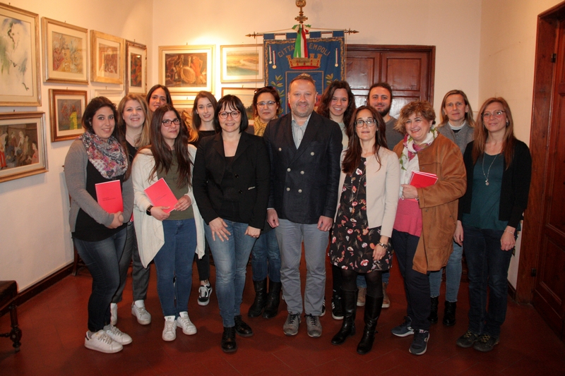 A conclusione del percorso svolto nel servizio civile regionale e nazionale questa mattina, giovedì 9 maggio 2019, in palazzo comunale nella Galleria d’Arte Moderna, sono stati ricevuti dall’assessore alle politiche sociali del Comune di Empoli, i giovani che hanno vissuto, anche per la seconda volta, questa esperienza. A tutti loro è stata poi consegnata simbolicamente una copia della Costituzione Italiana.