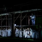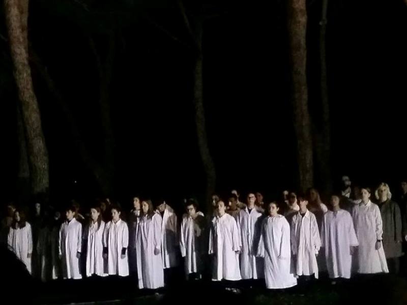 Anche le attrezzature sceniche e il luogo di ambientazione hanno fornito maggiore incisività al racconto, pensato e diretto magistralmente da Firenza Guidi in un percorso itinerante all’interno del giardino della scuola secondaria.