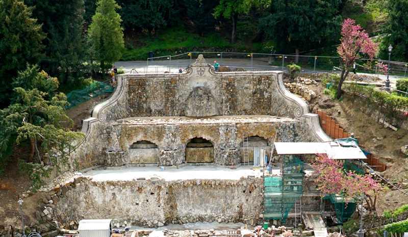 E’ questa la parte più spettacolare del grande intervento di restauro su tutto il complesso di grotte, vasche e fontane che si sviluppa su un dislivello di 54 metri, cominciato lo scorso luglio e interamente sostenuto per una spesa di 2,5 milioni di euro da Fondazione CR Firenze nell’ambito della normativa ‘Art Bonus’. Lo ha curato il Comune di Firenze (Direzione Servizi Tecnici - Servizio Belle Arti e Fabbrica di Palazzo Vecchio, Direzione Ambiente – Servizio Parchi, Giardini ed Aree Verdi, Direzione Nuove Infrastrutture e Mobilità – Servizio Viabilità, SILFI Spa) con la supervisione dei tecnici dello Studio Hydea incaricato dalla Fondazione. Tutta l’operazione è stata eseguita dall’Impresa Bartoli che ha vasta esperienza in questo campo e l’attività di tutela è stata svolta dalla Soprintendenza Archeologica, Belle Arti e Paesaggio per la Città Metropolitana di Firenze e per le provincie di Pistoia e Prato.