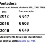 "Tasse raddoppiate? Forza Italia è in vena di dare i numeri! Mettono in un unico calderone e comparano grandezze, numeri e voci di bilancio che nel tempo sono cambiate (prima la TARI ad es non la riscuoteva il comune). Gli amici di Forza Italia farebbero bene, proprio nella terra di Fibonacci, a fare campagna elettorale senza offendere l'importanza dei numeri. Trascrivo* solo pochi dati per far capire che la tassazione locale a Pontedera è rimasta complessivamente stabile. Che è in corso da anni un percorso di riduzione della TARI. E che nel mio decennio il debito complessivo contratto per la realizzazione di opere pubbliche ed investimenti si è ridotto di un un quinto."