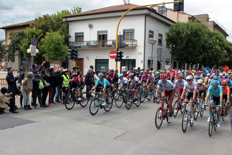 Tantissime le persone assiepate lungo il tracciato, sul quale il ciclista in fuga, Sho Hatsuyama, team UCI Professional Continental Nippo-Vini Fantini-Faizanè, è transitato intorno alle ore 13,42 (passaggio da viale Matteotti), seguito a circa 4 minuti di distanza dal gruppo.