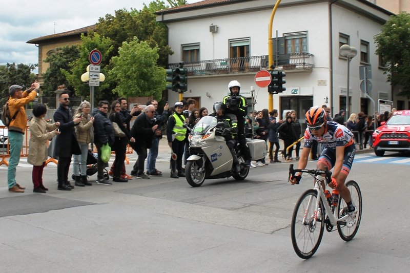 Tantissime le persone assiepate lungo il tracciato, sul quale il ciclista in fuga, Sho Hatsuyama, team UCI Professional Continental Nippo-Vini Fantini-Faizanè, è transitato intorno alle ore 13,42 (passaggio da viale Matteotti), seguito a circa 4 minuti di distanza dal gruppo.