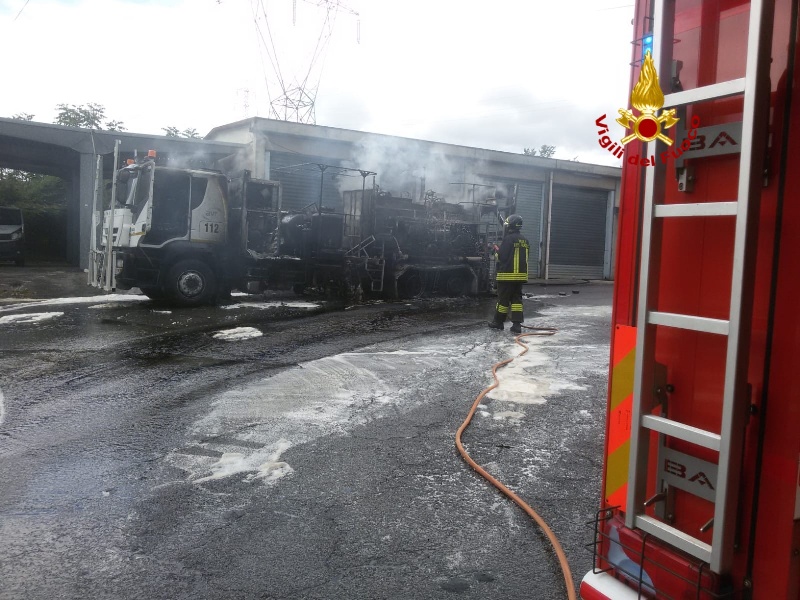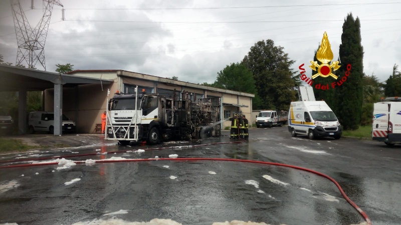 Un mezzo pesante utilizzato per stendere il catrame sulle strade da asfaltare è andato in fiamme nei pressi del casello dell'autostrada A1 a Calenzano nel pomeriggio di oggi, lunedì 13 maggio. Sul posto i vigili del fuoco di Firenze, Calenzano e Firenze Ovest. L'intervento è stato reso difficoltoso dal fatto che il mezzo trasportava olio e bombole di GPL. Non si segnalano persone coinvolte. Di seguito le foto dell'intervento.