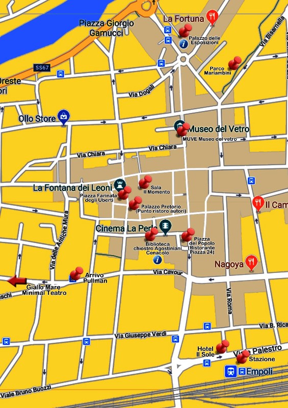 Gli incontri in programma si terranno in vari luoghi del centro storico di Empoli: presso la Biblioteca comunale “Renato Fucini”, al Cenacolo degli Agostiniani, al Palazzo delle Esposizioni, nella Sala Teatro Il Momento, al Muve – Museo del Vetro, al Parco Mariambini, al Minimal Teatro, al Cinema La Perla e all’interno delle tensostrutture situate nel Chiostro degli Agostiniani, in Piazza Farinata degli Uberti e presso il Palazzo delle Esposizioni. La tensostruttura che inizialmente era prevista in Piazza del Popolo sarà allestita in Piazza Farinata degli Uberti che ospiterà quindi due tendoni dedicati a incontri con l’autore, spettacoli, laboratori per bambini e ragazzi e incontri per un pubblico adulto.