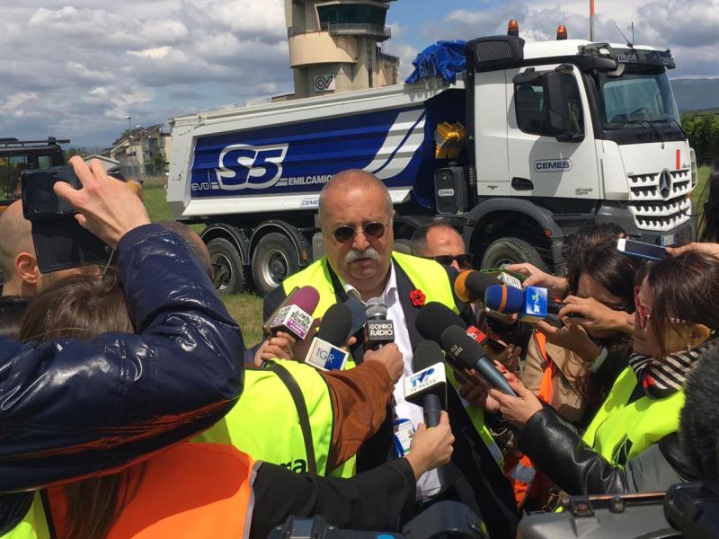 Dopo il taglio del nastro l'assessore regionale ai trasporti Vincenzo Ceccarelli ha detto di giudicare di buon auspicio l'avvio dei lavori poiché l'intervento è certamente a servizio dell'attuale pista, ma metterà in sicurezza anche quella da realizzare. L'ha giudicata un'opera ambientalmente rilevante poiché le acque saranno raccolte, trattate e depurate per poi essere reimmesse in rete. Si tratta di lavori per un importo di circa 2 milioni di euro e della durata di circa 7 mesi.