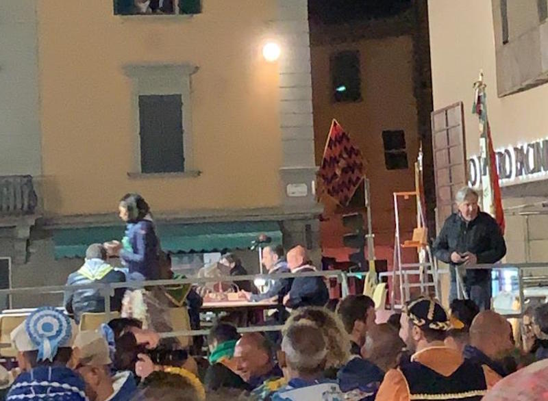Delle dodici fazioni, solo dieci saranno realmente protagoniste questa sera, dato che Porta Bernarda e Cappiano sono state squalificate e non correranno il Palio domenica pomeriggio (per questo motivo il cavallo non è stato sorteggiato per rossoneri e verdeblu).