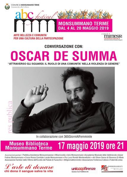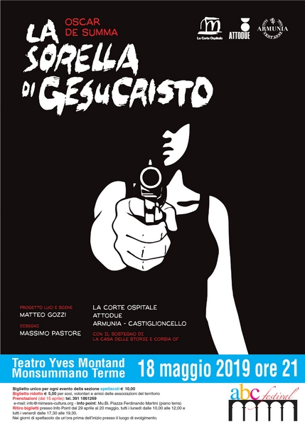 Gran finale per la prima edizione dell'Abc Festival in svolgimento a Monsummano Terme e che ospiterà, tra gli altri, nei prossimi giorni due spettacoli di assoluto rilievo. Oscar De Summa porterà in scena il pluripremiato "La sorella di Gesùcristo" (18 maggio ore 21,00 Teatro Yves Montand, posti disponibili Info 391 1861269), Lino Guanciale "Fuggi la terra e l'onde". De Summa porterà con il suo spettacolo l'attenzione di tutti sul tema del pregiudizio e della violenza sulle donne. La storia è quella di Maria, la sorella di Gesucristo che attraversa a piedi il paese impugnando una pistola per vendicare la violenza subita la sera prima. De Summa attraverso un racconto serrato fatto di parole, immagini e musica si immerge negli sguardi, nei pregiudizi, nei giudizi dando voce a tutti i personaggi che la protagonista incontra lungo la strada: la nonna, la migliore amica, la maestra, la madre di chi l’ha violentata, suo padre, l’autore dell’aggressione. Lo spettacolo sarà preceduto da una conversazione con l'autore (Mu.Bi piazza Martini, 17 maggio ore 21, tutti invitati a partecipare) in collaborazione con 365giornialfemminile. Il 20 maggio il festival ospiterà Lino Guanciale, fresco dei successi della fiction Rai "La Porta Rossa" e del suo personaggio il commissario Cagliostro. In "Fuggi la terra e l'onde", l’attore, attraverso letture che spaziano da anonimi cronisti arabi, passando per voci di migranti africani dei nostri giorni sino ai versi dall’Eneide Virgiliana, ci racconta una frastagliata ma profonda linea di congiunzione, quella della ricerca della salvezza e della felicità attraverso la sfida al mare.