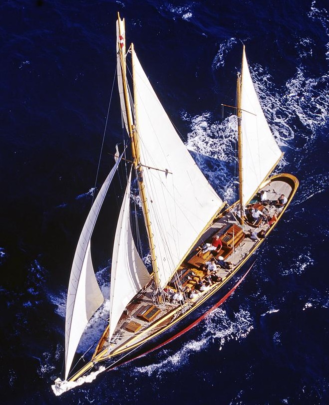 Tra il lavori effettuati nel periodo 2016-2019 dal Cantiere Del Carlo di Viareggio, ci sono lo smantellamento dei torelli di dritta e sinistra (le prime tavole del fasciame partendo dal fondo), lo smontaggio della zavorra in piombo con relativa sostituzione dei perni, la ricostruzione della nuova chiglia in mogano nella quale è stata sagomata la battura, ovvero quel ‘gradino’ o incastro che accoglie la prima tavola del fasciame. È seguita la sverniciatura integrale dello scafo, la sostituzione di circa 100 metri lineari di tavole dell’opera viva e opera morta, della vecchia viteria di serraggio con altra in bronzosilicio, la gommatura del ponte in teak e la ricostruzione di una nuova pala del timone in legno di mogano. Gli interni della barca, quasi integralmente originali, sono ricoperti da pregiati pannelli di radica.