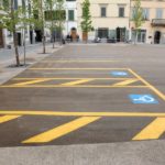 Quest’oggi, venerdì 17 maggio, è stata realizzata la segnaletica del parcheggio che potrà ospitare in totale 34 stalli auto, di cui due dedicati a persone con permesso disabili, esattamente lo stesso numero di posti presenti prima dell’inizio del cantiere. Inoltre ci saranno due aree carico-scarico/manovra.