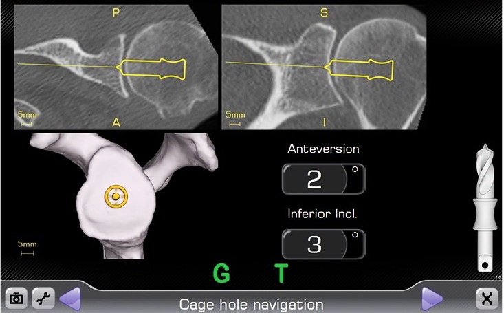 Durante l’intervento chirurgico sarà poi il sistema di navigazione a guidare con massima precisione il chirurgo nell’impianto della protesi, proprio come un Gps. L’operatore potrà infatti controllare la progressione della fresa e del trapano apportando aggiustamenti costanti e dinamici al fine di assicurare che la perforazione e l’alesatura siano eseguite secondo il progetto pre-operatorio.