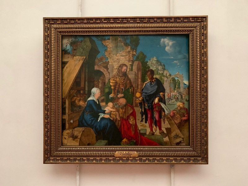 Come avviene per le due coppie di Adamo ed Eva, anche quest’ultimo dipinto di Dürer dialoga adesso con un’Adorazione realizzata da un altro maestro dello stesso periodo storico: si tratta di quella dell’ olandese Gerard David, finora non esposta.
