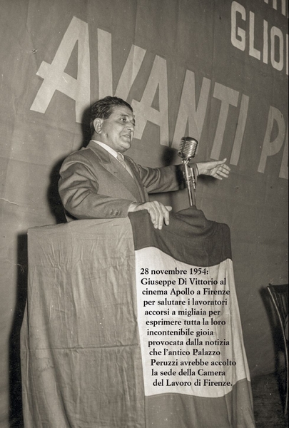 So’ nata nel palazzo Peruzzi Nel libro è riportata anche la testimonianza di Elena Perini, inquilina del palazzo durante la seconda guerra mondiale. Tra le altre cose ricorda che all’ultimo piano, nell’appartamento di altri inquilini, era nascosta una famiglia ebrea. Tutti ne erano a conoscenza e nessuno parlò, neppure quando i tedeschi fecero irruzione nel palazzo. Nell’appendice documentaria sono riportati i bollettini ciclostilati della sottoscrizione delle varie categorie di lavoratori della città e della provincia, per l’acquisto del palazzo nel 1954. In pochi mesi furono raccolti circa 100 milioni di lire. Negli ultimi anni sono state ritrovate in Camera del Lavoro diverse migliaia di foto che raccontano l’attività dentro il palazzo, foto da cui è possibile anche ricostruire gli ambienti com’erano nel passato. Nell’appendice documentaria del libro se ne riportano alcune più significative come quelle relative ai tipografi fiorentini perché fu una delle prime categorie ad organizzarsi in un sindacato (3 dicembre 1864); quelle delle lavoratrici del vetro e della ceramica di Sesto Fiorentino e di Empoli; le foto dei panettieri raccontano di una categoria che è nata nel 1875.