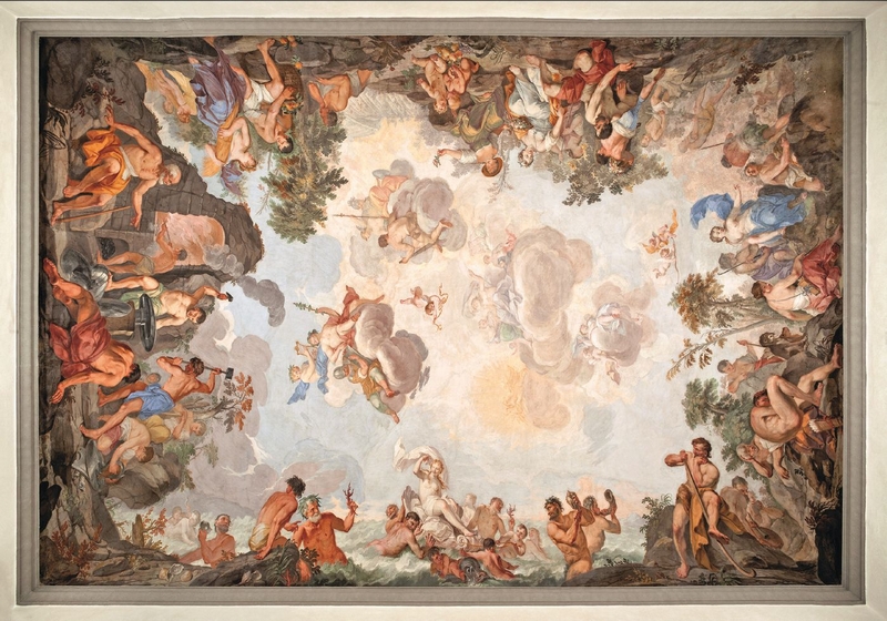 La Casa dei Lavoratori quant’è bella! Non si può tenere una casa così e non farla vedere agli altri. La pubblicazione del libro è un primo passo verso questo percorso di valorizzazione che abbiamo intrapreso. Si è cercato di approfondire la conoscenza della struttura architettonica del palazzo, delle modifiche apportate durante i secoli e dei beni artistici ancora presenti, in particolare di quelli che sono stati recentemente restaurati. È stata fatta una approfondita analisi degli affreschi come ad esempio quelli della sala Palazzeschi. Un dipinto di fine seicento di altissima qualità che racconta una storia mitologica in modo organico. Dall’analisi fatta si è arrivati all’ipotesi che l’affresco potrebbe essere attribuito alla scuola di Luca Giordano o addirittura allo stesso che in quel periodo, seconda metà del 1600, si trovava a Firenze «dove ebbe a fare un bellissimo quadro di grandezza di palmi ventidue per il serenissimo Granduca Cosimo, in cui figurò un trionfo di Bacco con molte figure, con nobile e vaga invenzione disposte; ed oltre a questo alcuni altri per diversi signori fiorentini». Questa notizia è tratta da un articolo di Angiolo Orvieto su «Il Marzocco» del 27 marzo 1932, il quale si basa sulle notizie pubblicate da Francesco Baldinucci In vite di pittori. Nella sala dei ritratti sono raffigurati gli antenati della famiglia Bourbon. Tra questi spicca il ritratto del cardinale Francesco Maria del Monte, estimatore e protettore del Caravaggio, e quello di Guido Baldo, insigne matematico, uno degli scienziati più rinomati del suo tempo, amico del giovane Galileo Galilei.